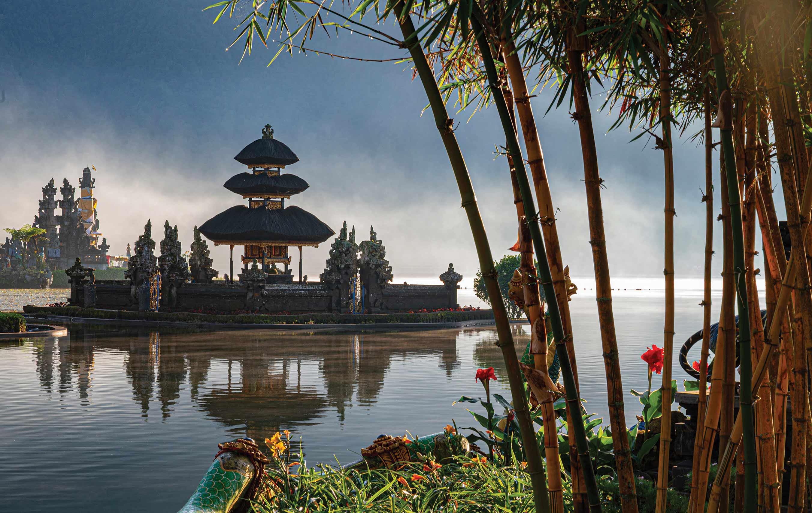 Daniel Kordan, um respeitado fotógrafo, propôs-nos uma viagem de grande interesse na qual se explorava Bali, Sumba, Java e Komodo – onde ambicionávamos conseguir ver de perto o temido dragão-de-Komodo. O nosso pequeno grupo passou dez dias magníficos a saborear esta remota parte do Mundo. Logo no primeiro dia em Bali, o Daniel conduziu–nos até ao interior da floresta onde se escondia uma cascata. Connosco levámos uma dançarina tradicional balinesa que nos iria servir de modelo, criando um deslumbrante contraste com o fundo verdejante da floresta e a água corrente. Seguimos depois para o requintado templo Pura Ulun Danu Bratan, do século XVII, um dos mais pitorescos templos hindus shaivitas de Bali que fotografámos ao nascer do sol e que se situa numa pequena ilha junto à margem ocidental do lago Bratan, nas terras altas do centro de Bali. Enquanto esperávamos pelo nascer do sol, vivemos o momento ideal para meditar sobre a beleza que dá fama a Bali. Para assistirmos o pôr-do-sol dirigimo-nos ao templo mais antigo da ilha, o Templo Bali Jati Batur, situado junto ao lago Batur, onde fomos recebidos por um grupo de patos.